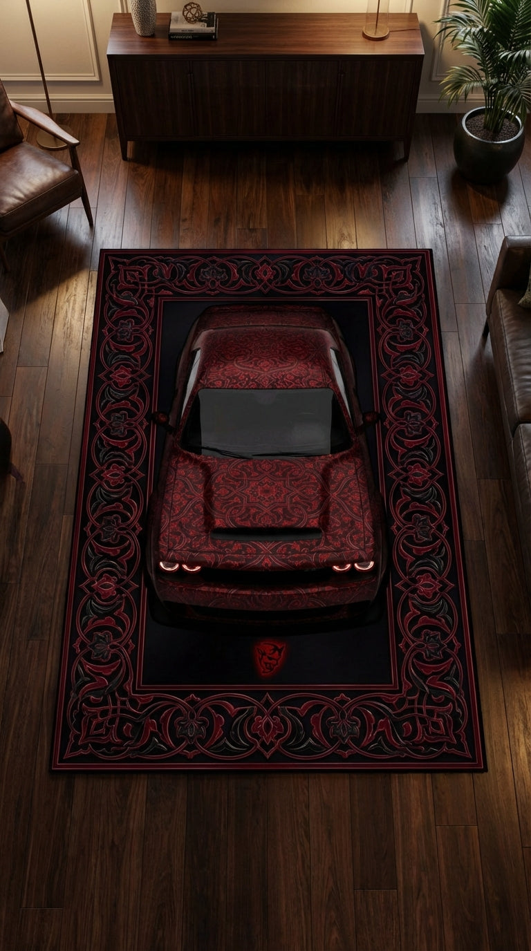 The Dodge Challenger Demon rug is built for raw dominance — unapologetic, aggressive, and impossible to ignore.